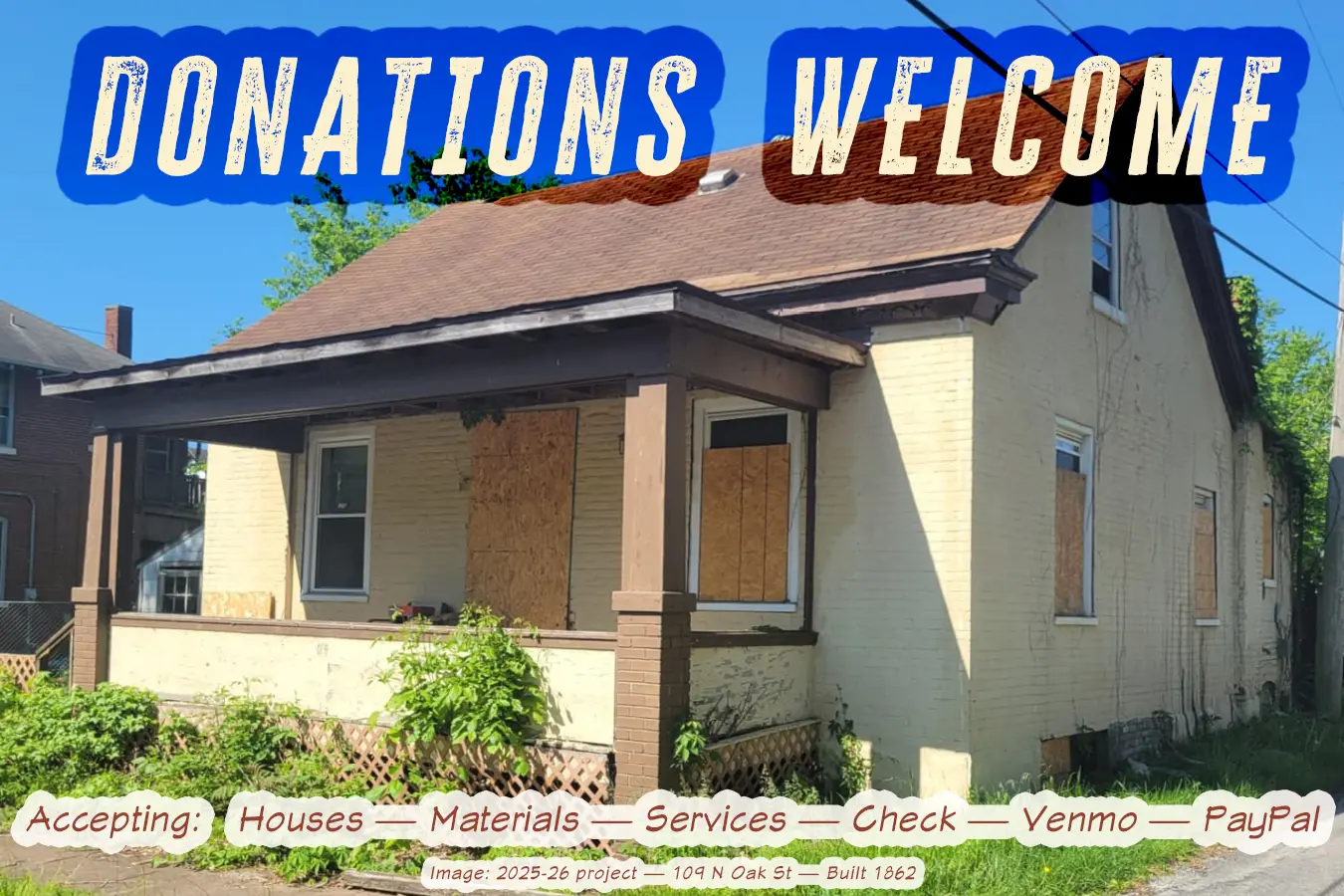 We also accept houses, building materials, and services. Email admin@bellevillecdc.org or call us at (618) 977-5867 for more information.